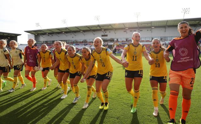 为确保出线有利形势,瑞典队早早占据主动,在半场结束前3球领先葡萄牙。最终凭借5比0的大比分,瑞典以净胜球的优势拿到小组第一,1/4决赛避开法国的同时,进入相对有利的半区。阿斯拉尼(下图左一)1传1射,三场小组赛都有助攻。